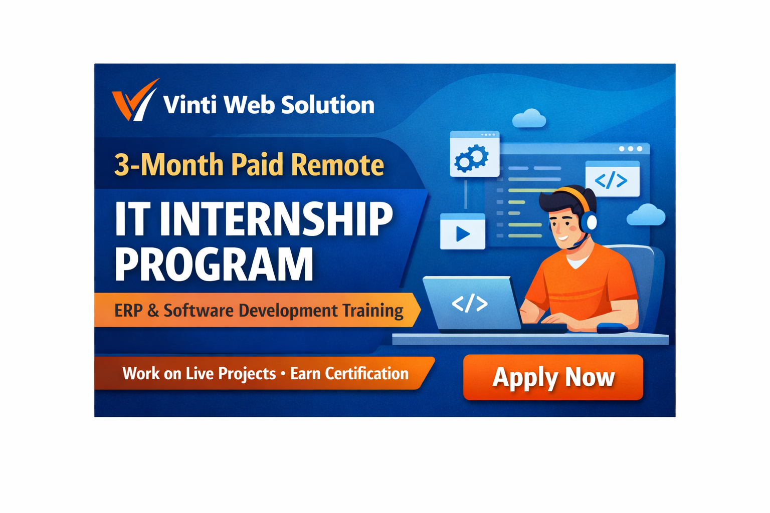 Join vinti web solution’s paid remote internship program designed to provide real-world erp and software development exposure. work on live company projects, gain structured mentorship, and build industry-ready skills from anywhere.
